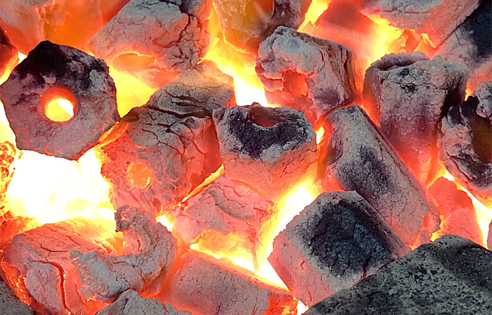 高い火力で一気に焼き上げるため、国産で最高品質の炭を使用しています。